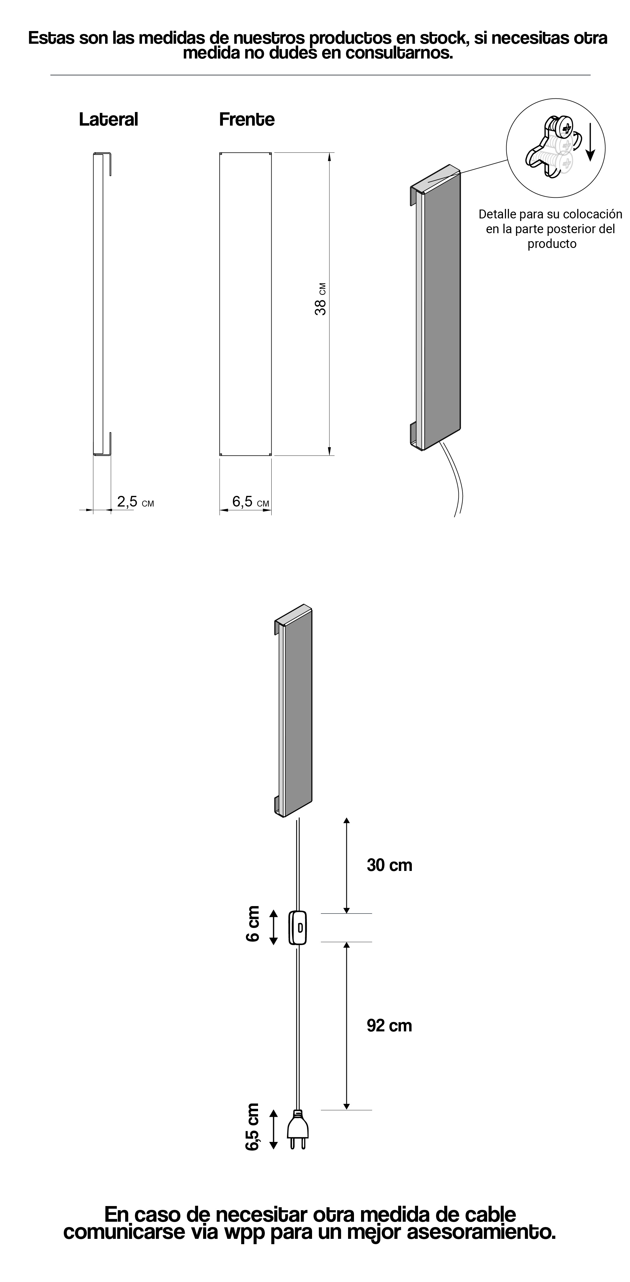 En caso de querer instalarla en boca de luz directamente atraves de la pared especificarlo inmediatamente despues de realizada la compra.