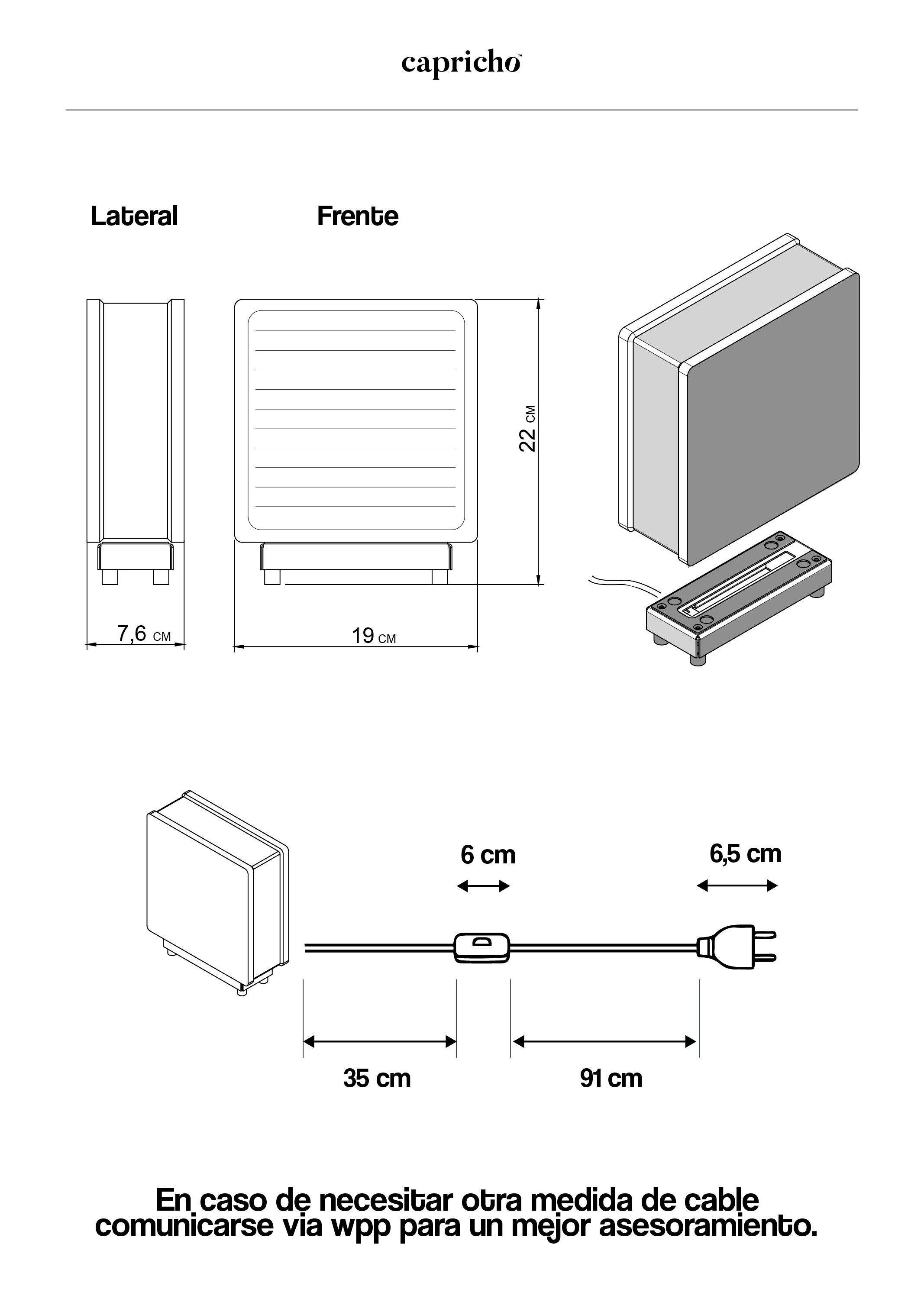 Iluminación: LED SMD2835 blanco cálido (3.000°K) conectado a 220v/vida útil de más de 23.000 horas (Aproximadamente 8 años utilizando la iluminación 8 horas por dia)