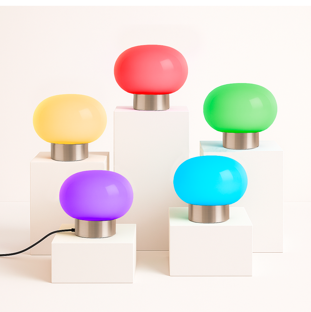 Velador de diseño contemporáneo con pantalla de vidrio opalino que suaviza la luz, creando una iluminación cálida y acogedora. Su base negra aporta un toque moderno y elegante que complementa cualquier decoración. Es perfecto para acompañarte en cualquier momento del día, ya sea para una noche de lectura, un momento de relax o simplemente para destacar tus espacios favoritos con estilo.